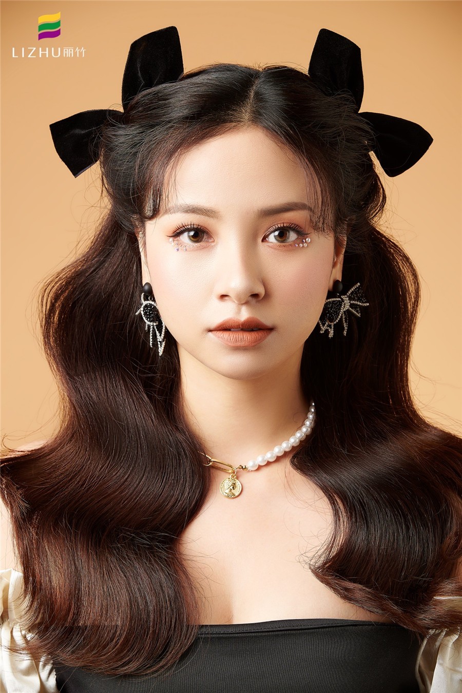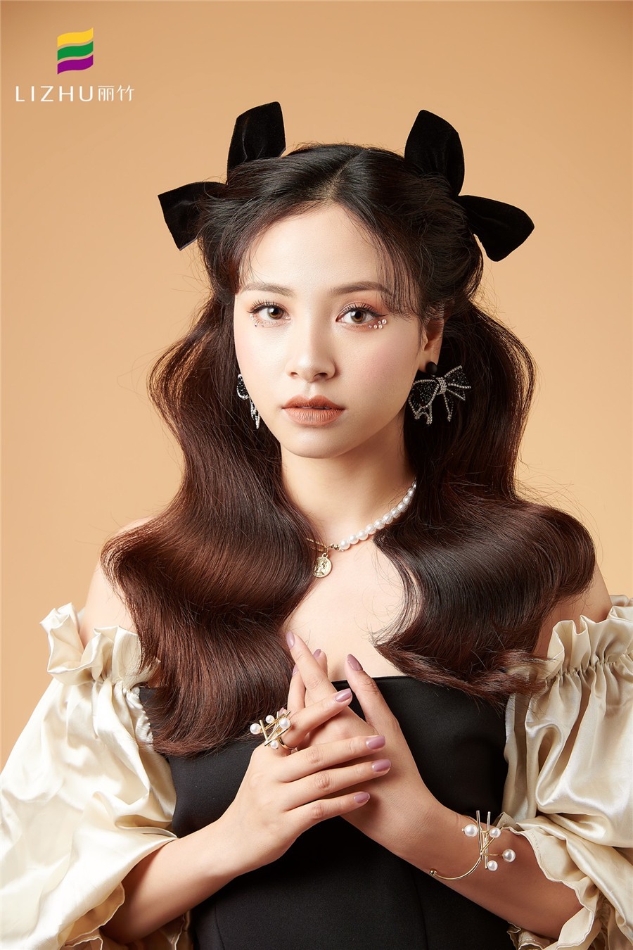 蝴蝶結發(fā)飾搭配紋理披發(fā)