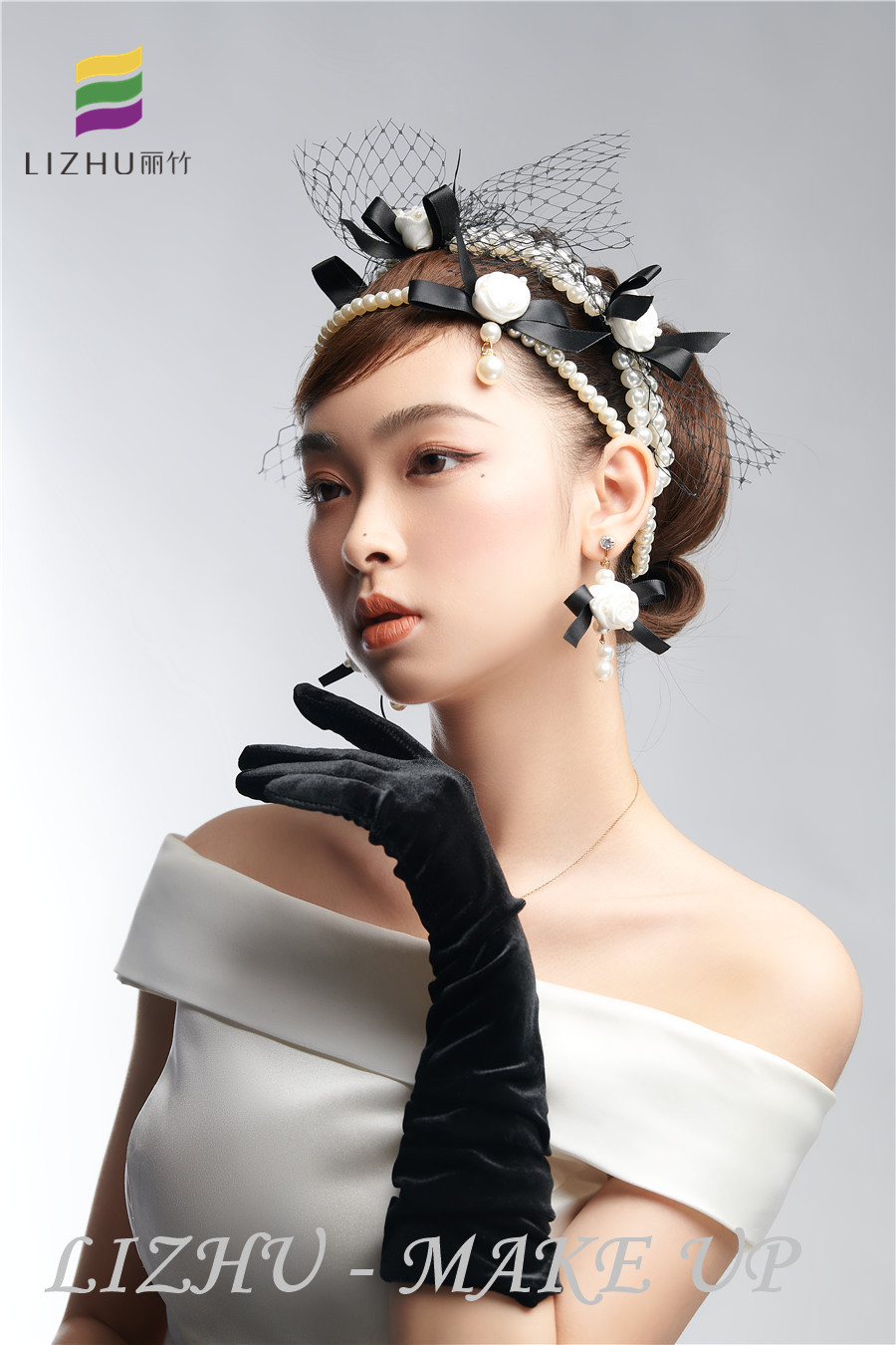 南寧彩妝美妝培訓(xùn)學(xué)校(麗竹彩妝學(xué)校)、南寧美妝培訓(xùn)機(jī)構(gòu)---簡約優(yōu)雅名媛造型:自然干凈的妝面打造輕薄裸妝感,簡約盤發(fā)佩戴網(wǎng)紗珍珠花朵頭飾,潔白無暇花朵耳飾清新亮眼,搭配白色綢緞面料半肩禮服,優(yōu)雅之中又不失少女的甜美。看了這些作品,想知道南寧有實(shí)力的化妝培訓(xùn)班,歡迎到麗竹彩妝學(xué)校了解課程。