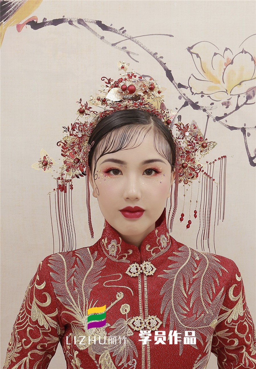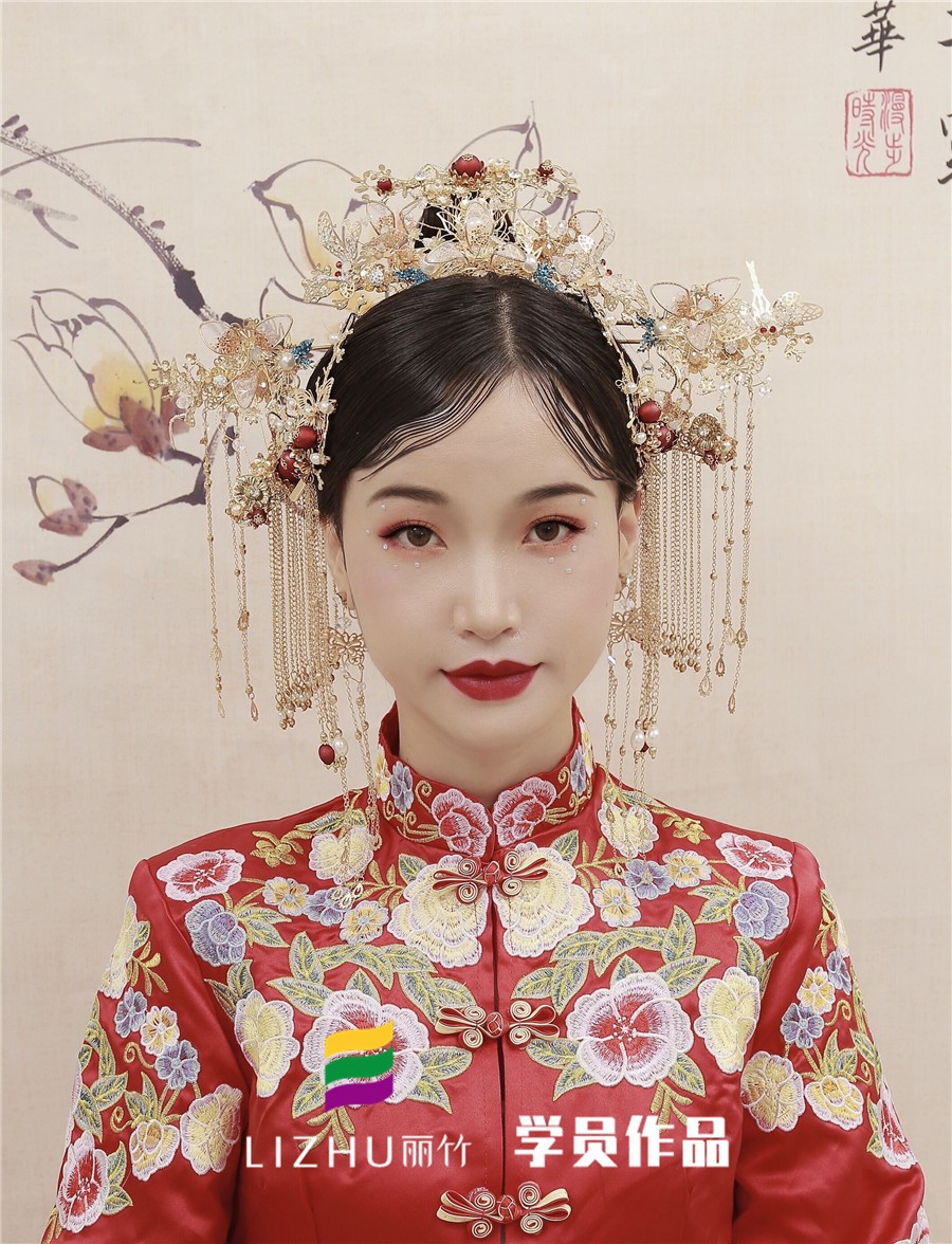 南寧化妝學(xué)校分享:雖然都是中式國(guó)風(fēng)的新娘造型,以秀禾為主要服飾,搭配極具中國(guó)紅特色的妝容,但仔細(xì)一看,還是會(huì)發(fā)現(xiàn)在秉承傳統(tǒng)東方魅力的同時(shí),還夾著令人眼前一亮的潮流元素。