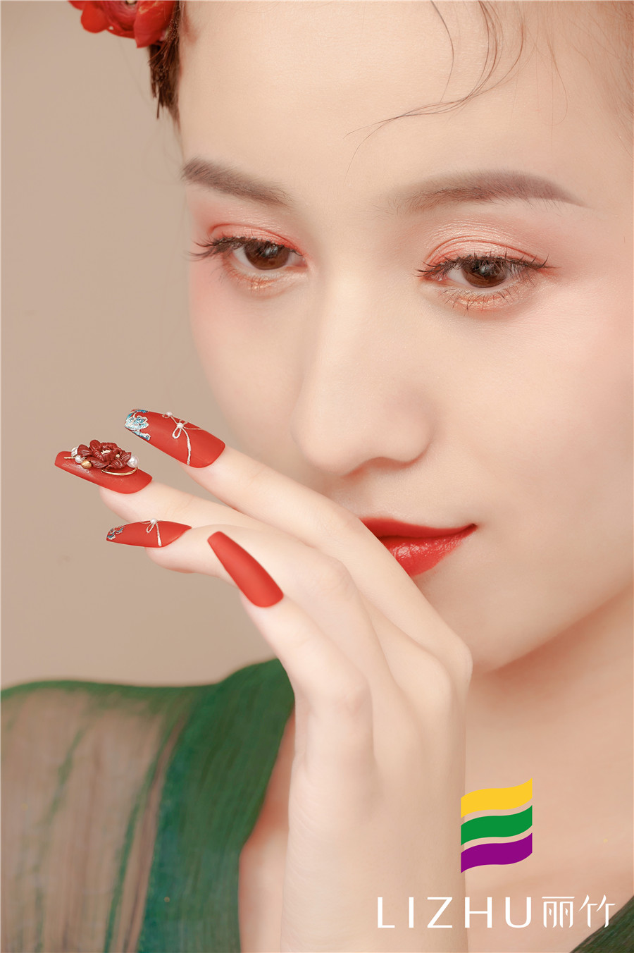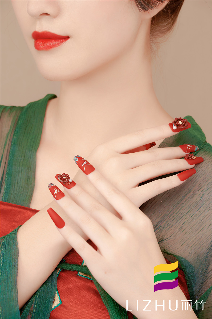 麗竹美甲作品:中式秀禾雕花美甲