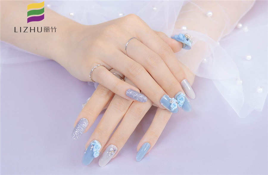 廣西正規(guī)美甲培訓(xùn)(麗竹美甲學(xué)校)新一期雕花美甲作品,既有玫瑰的浪漫,也有卡通熊的童趣,還有蝴蝶結(jié)的甜美,水湖藍(lán)的主色調(diào)加上銀色閃粉的點綴,讓整個美甲作品變得格外清新洋氣!