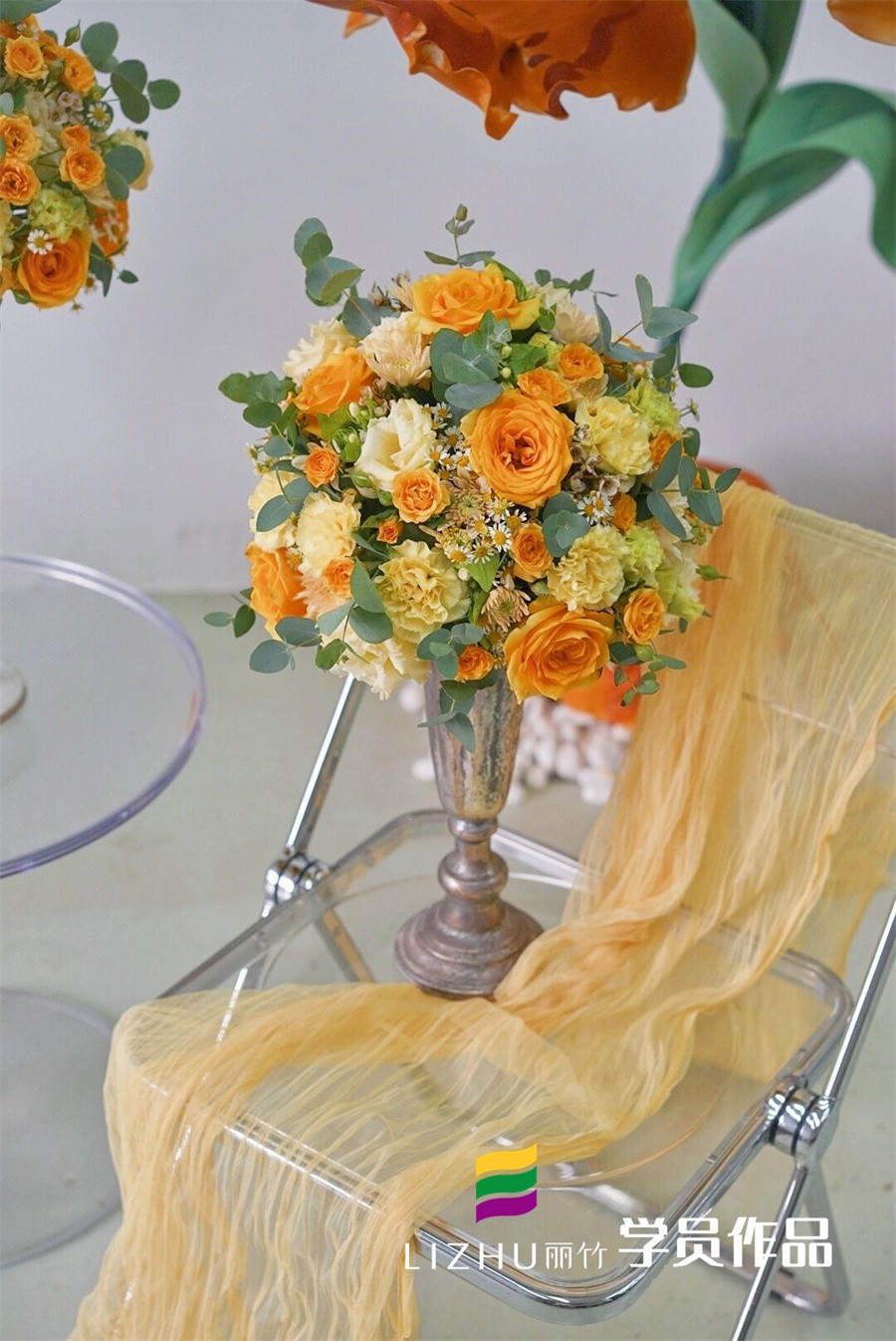 南寧花藝培訓(xùn)招生作品:半球形桌花