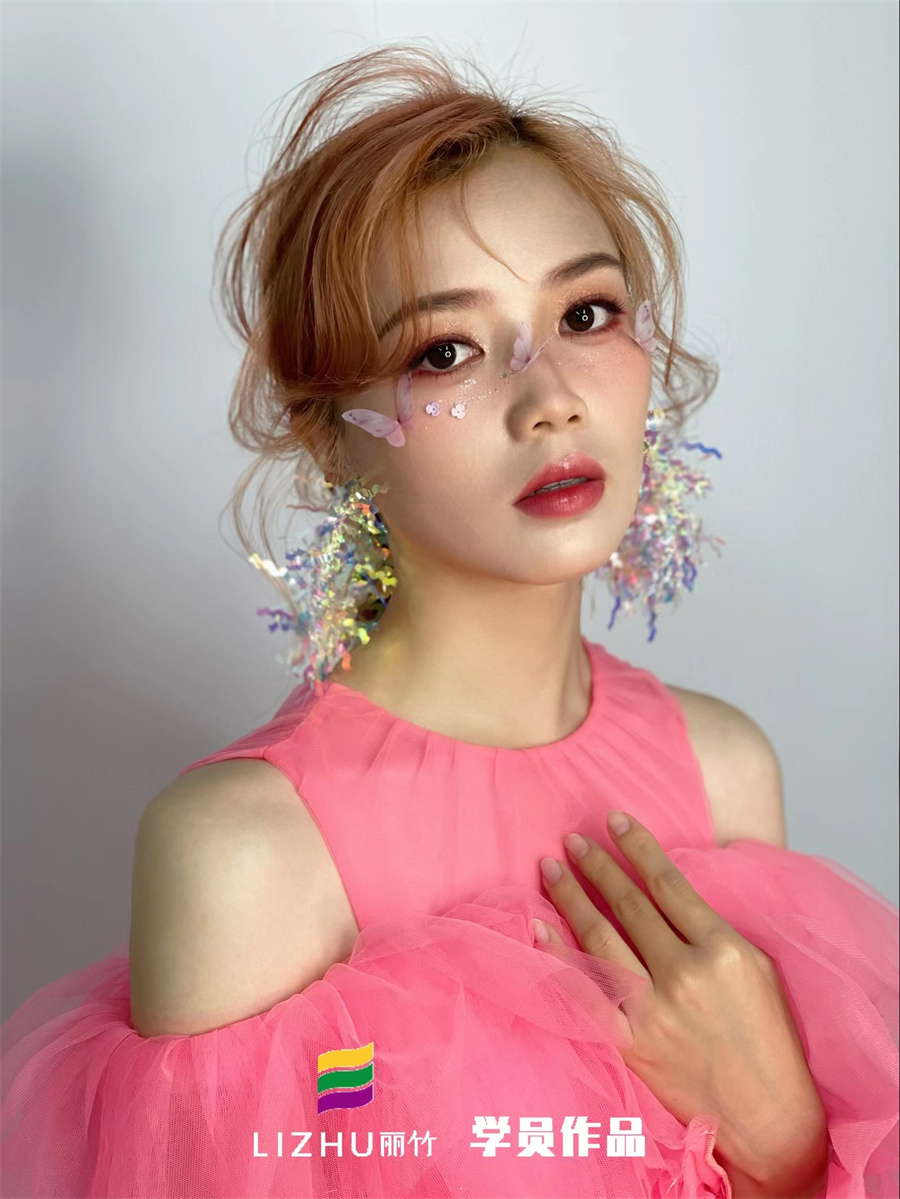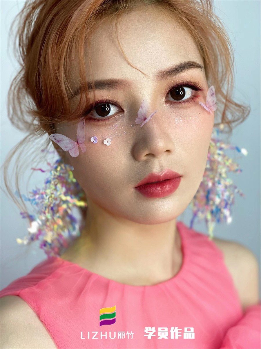 南寧彩妝培訓(xùn)名校、南寧新娘妝造型培訓(xùn)學(xué)校學(xué)員作品--唯美蝴蝶妝容:靚麗且清透的眼妝,被五彩斑斕的蝴蝶點綴,搭配色彩亮眼的大耳飾,產(chǎn)生了很強的視覺效果,讓人過目不忘之余。如果你想零基礎(chǔ)學(xué)新娘妝,南寧老牌化妝培訓(xùn)(麗竹化妝培訓(xùn))-南寧化妝培訓(xùn)班,老師手把手教學(xué),作品新潮,歡迎來電咨詢。