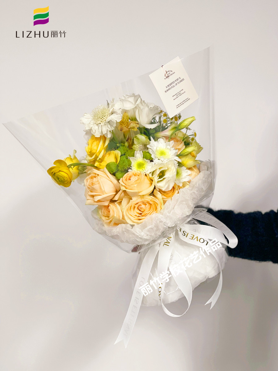 南寧有哪些花藝培訓(xùn)班?麗竹學(xué)校用作品證明---韓式清新花束(二)