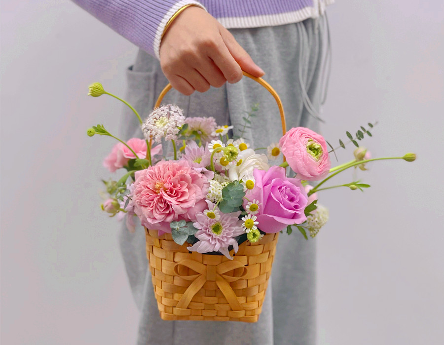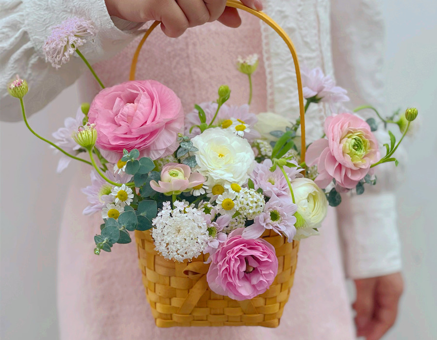 韓式手提花籃,南寧鮮花培訓(xùn)作品