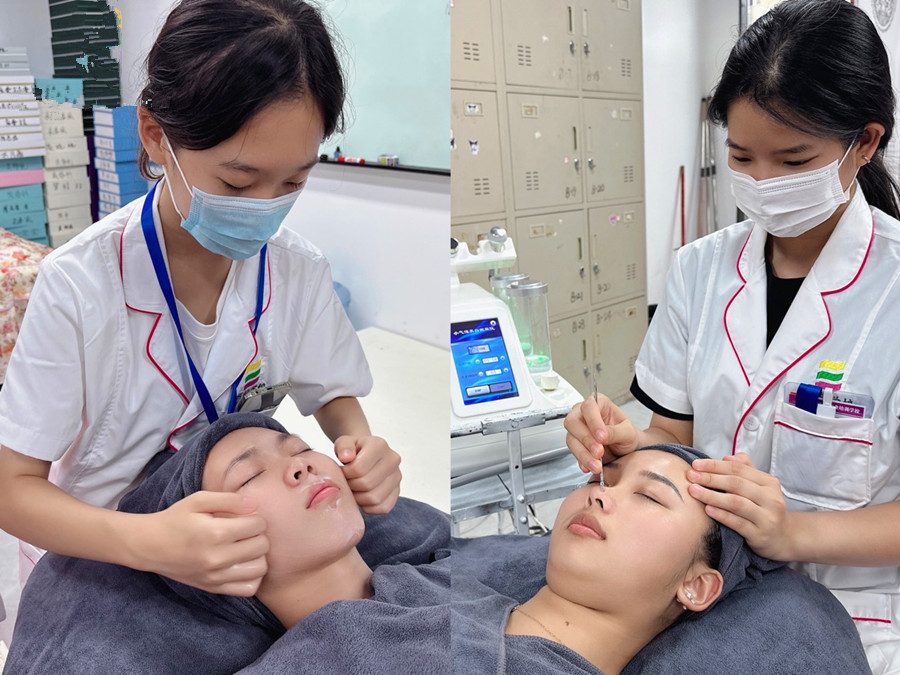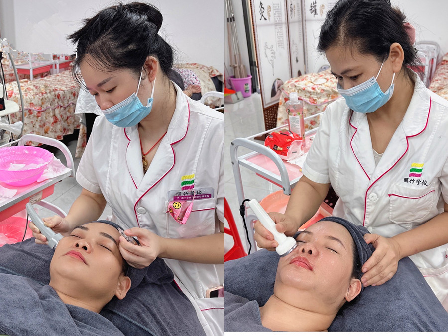 南寧美容專業(yè)學(xué)校---使用美容儀器進(jìn)行皮膚管理練習(xí)