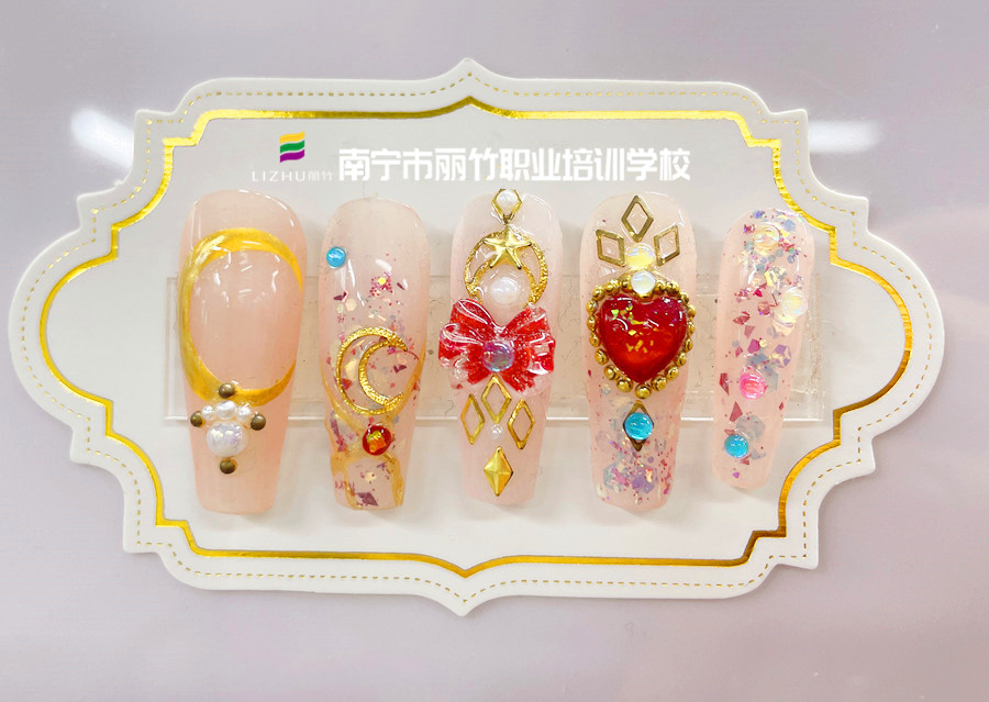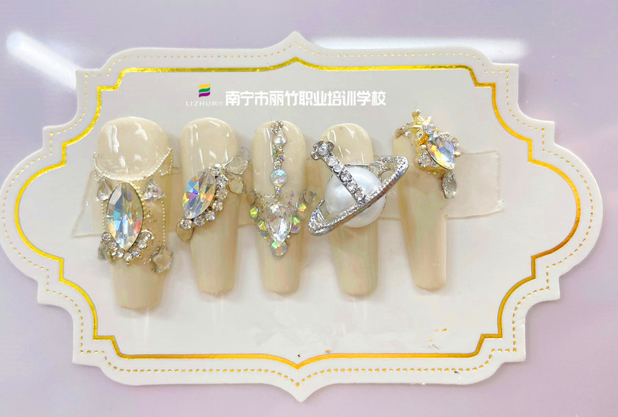 飾品堆鉆美甲,廣西美甲專業(yè)教學(xué)學(xué)員作品