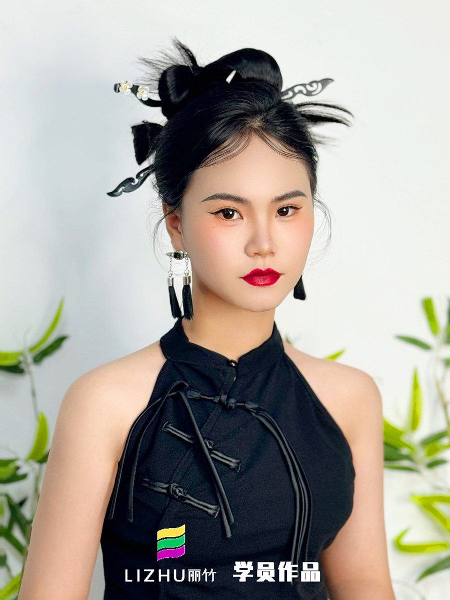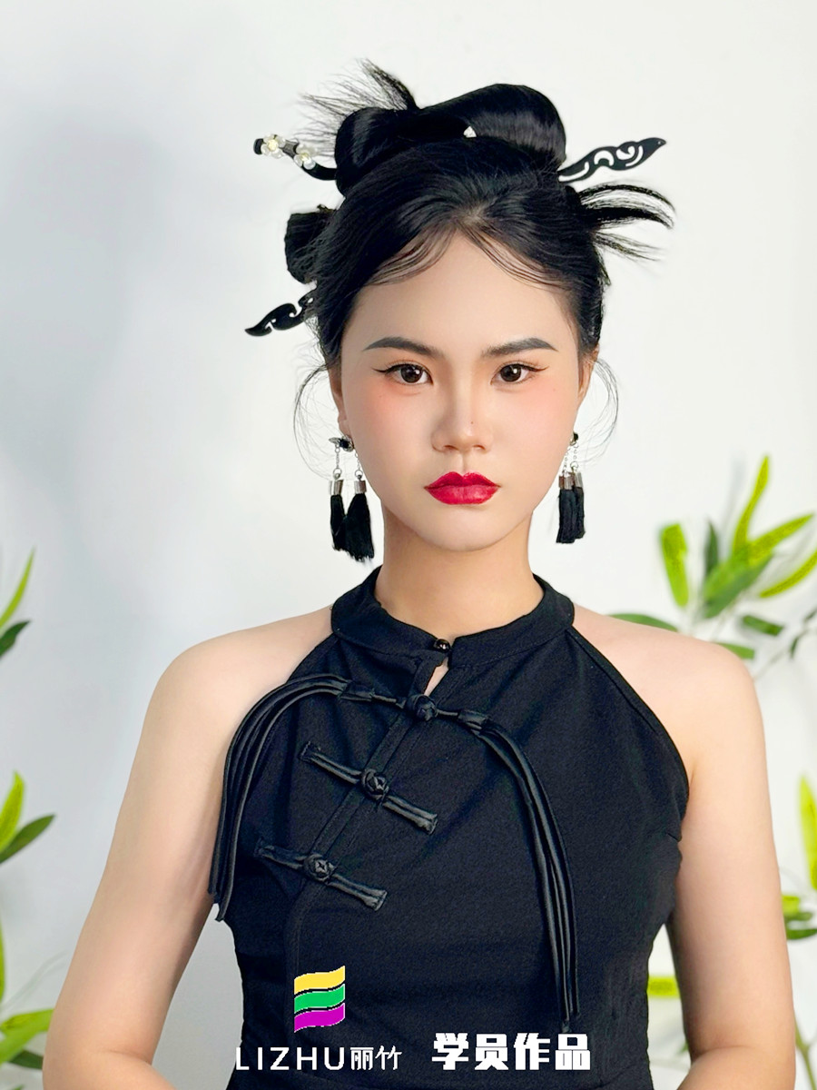 零基礎(chǔ)彩妝教學(xué) 南寧影樓彩妝培訓(xùn)學(xué)員(梁雅露)作品---新中式造型。如果你本就對(duì)化妝感興趣,或是想提升技術(shù),建議你可以趁著南寧化妝彩妝培訓(xùn)機(jī)構(gòu)-南寧彩妝寫真學(xué)校(麗竹彩妝寫真學(xué)校)真在進(jìn)行招生優(yōu)惠活動(dòng),聯(lián)系我們報(bào)名吧!