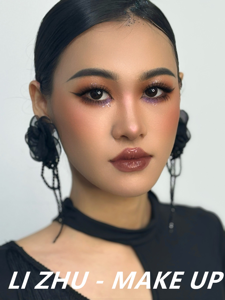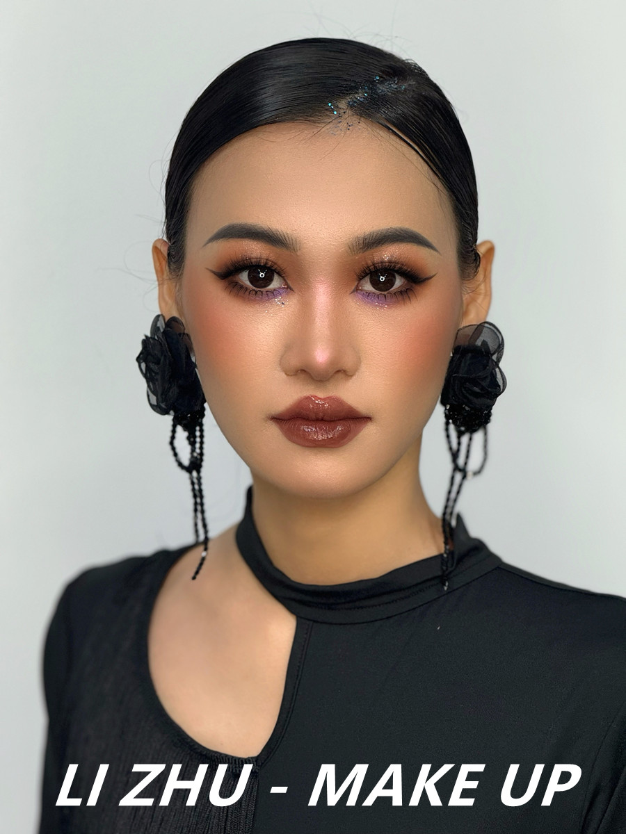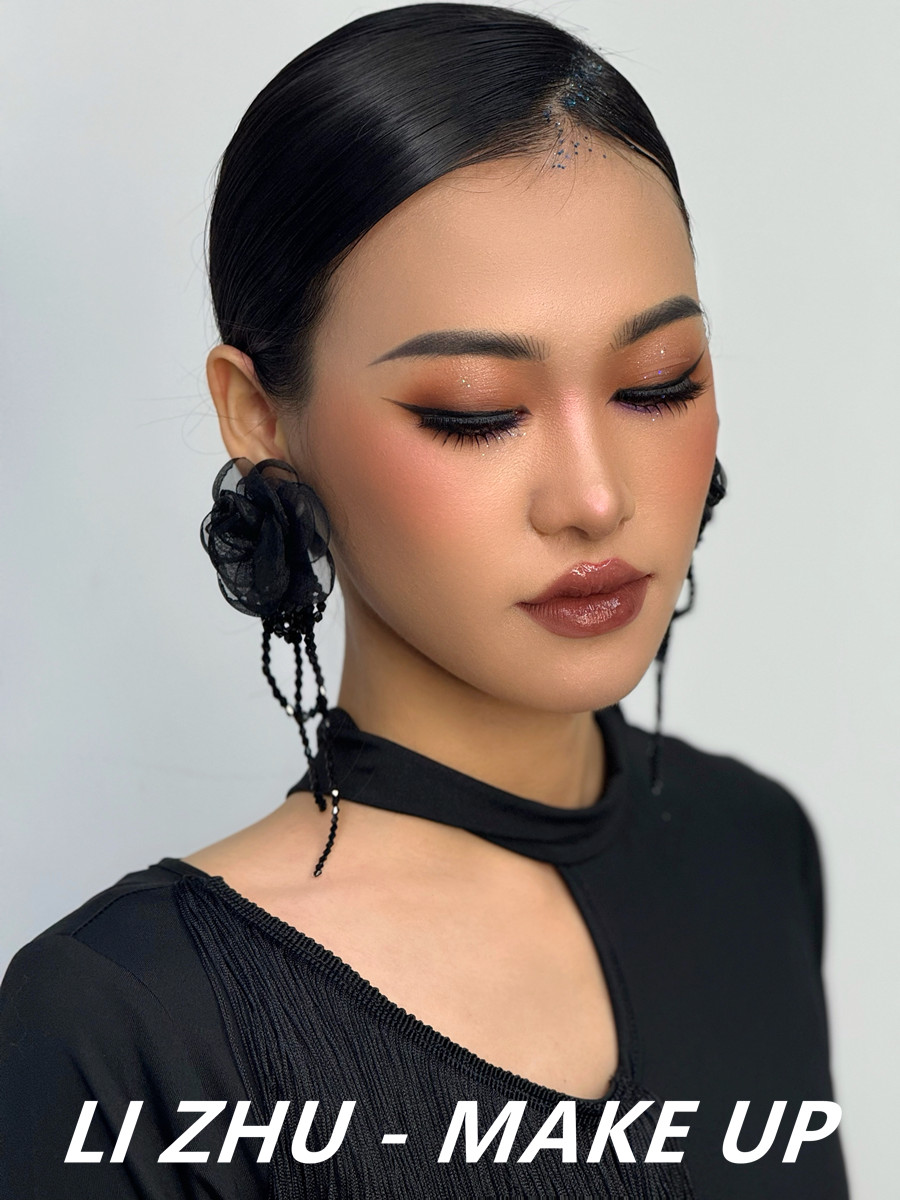南寧學(xué)美妝、南寧美妝培訓(xùn)排行榜:選擇深一號的粉底進行底妝創(chuàng)作,進而打造出陽光小麥的健康膚色。細致描繪的輕度煙熏眼妝,配上時下流行的“豬肝配豆沙”的唇妝,以及自然清秀的眉形設(shè)計,外加網(wǎng)紗黑色花朵耳環(huán)以及黑色禮服裙的裝飾,共同打造出了屬于東方性感美的輕歐美造型。