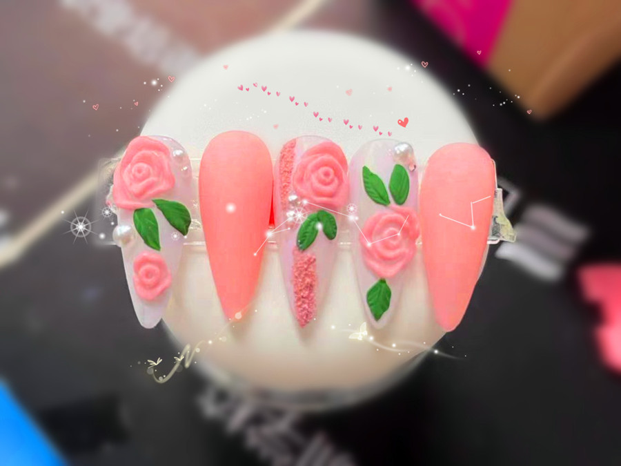 南寧美甲課堂、南寧美甲學(xué)習(xí):想趕赴一場不會凋謝的玫瑰之約?來一場“指尖的浪漫”,那就趕緊跟著南寧美甲造型進(jìn)修學(xué)校(麗竹美甲學(xué)校)里的南寧美甲師培訓(xùn)班的同學(xué)們一起制作粉色玫瑰雕花美甲吧!