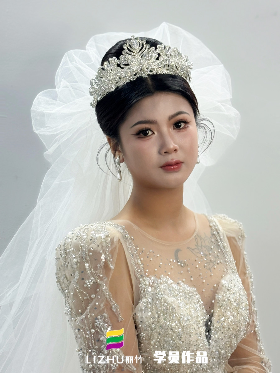 廣西新娘跟妝訓(xùn)-麗竹新娘彩妝培訓(xùn)作品---時(shí)尚白紗新娘