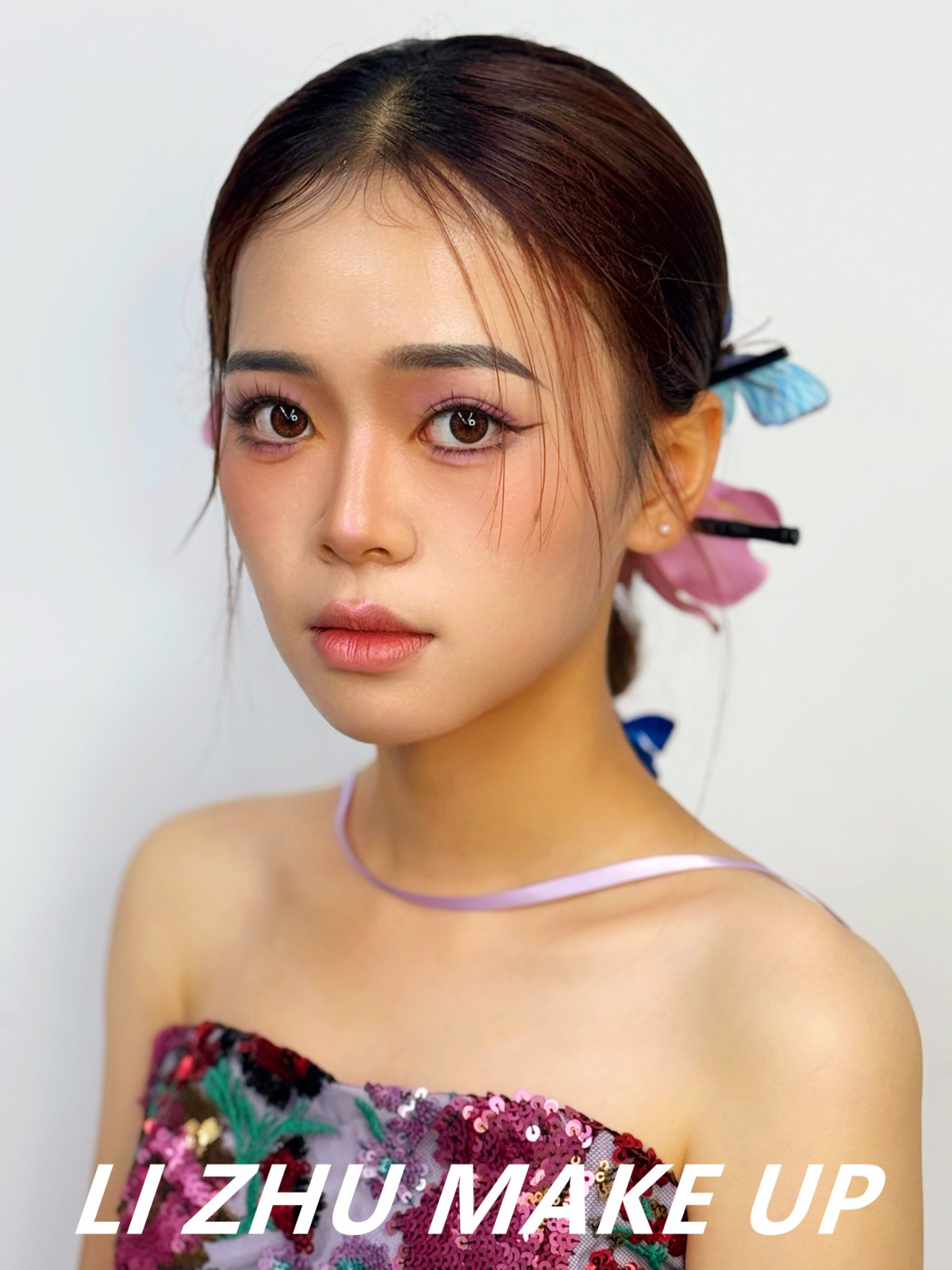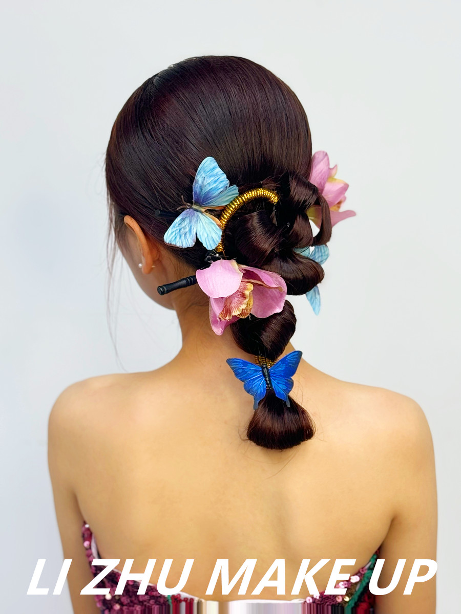 配上蝴蝶與鮮花發(fā)飾的點(diǎn)綴
