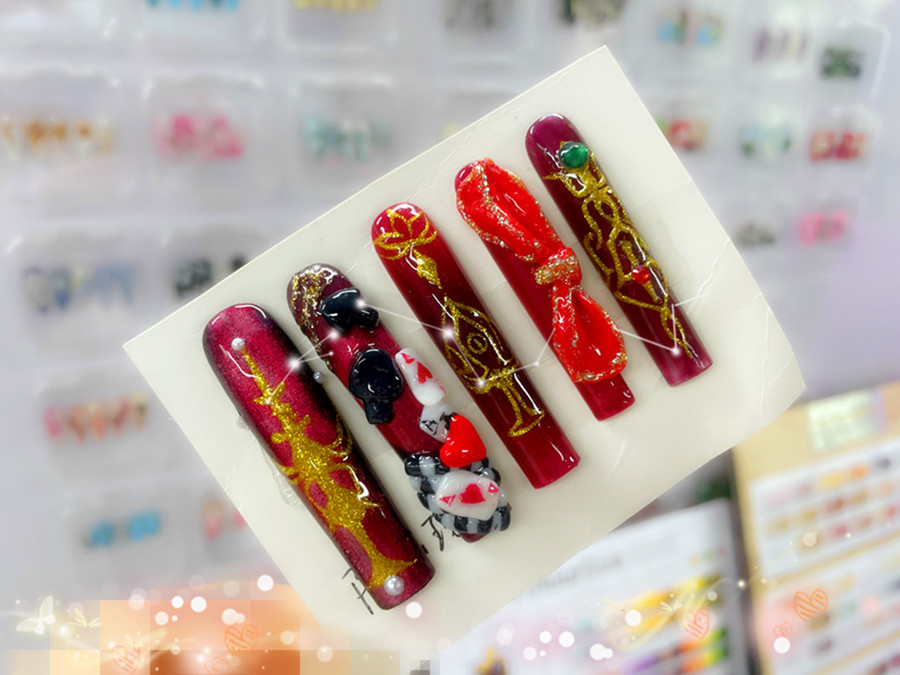 (麗竹美甲專業(yè)學員作品)-復古甜酷風美甲