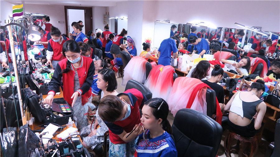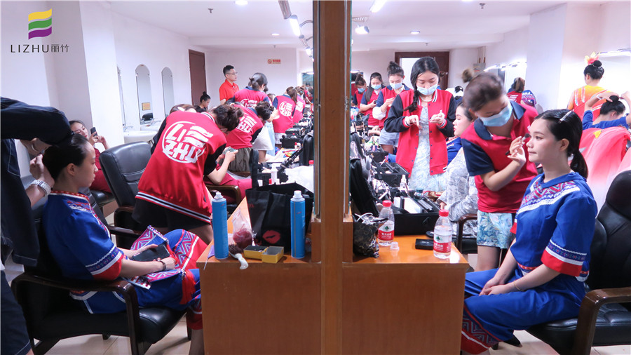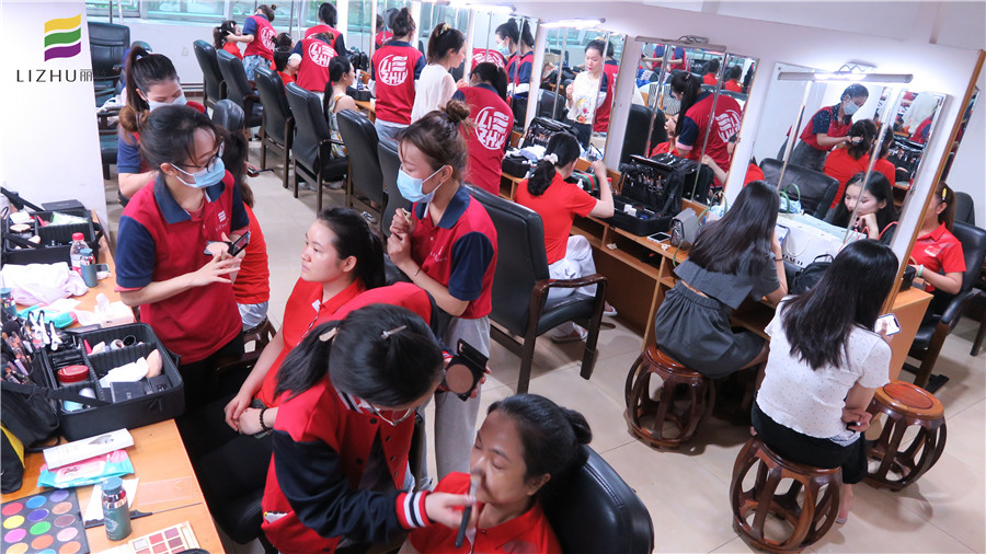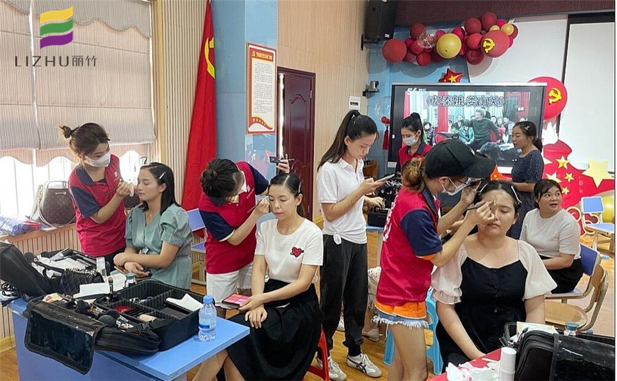 6月29日,麗竹學校組織化妝班學員為首府南寧紀檢監(jiān)察系統(tǒng)慶祝中國共產(chǎn)黨成立100周年合唱比賽提供妝造服務。