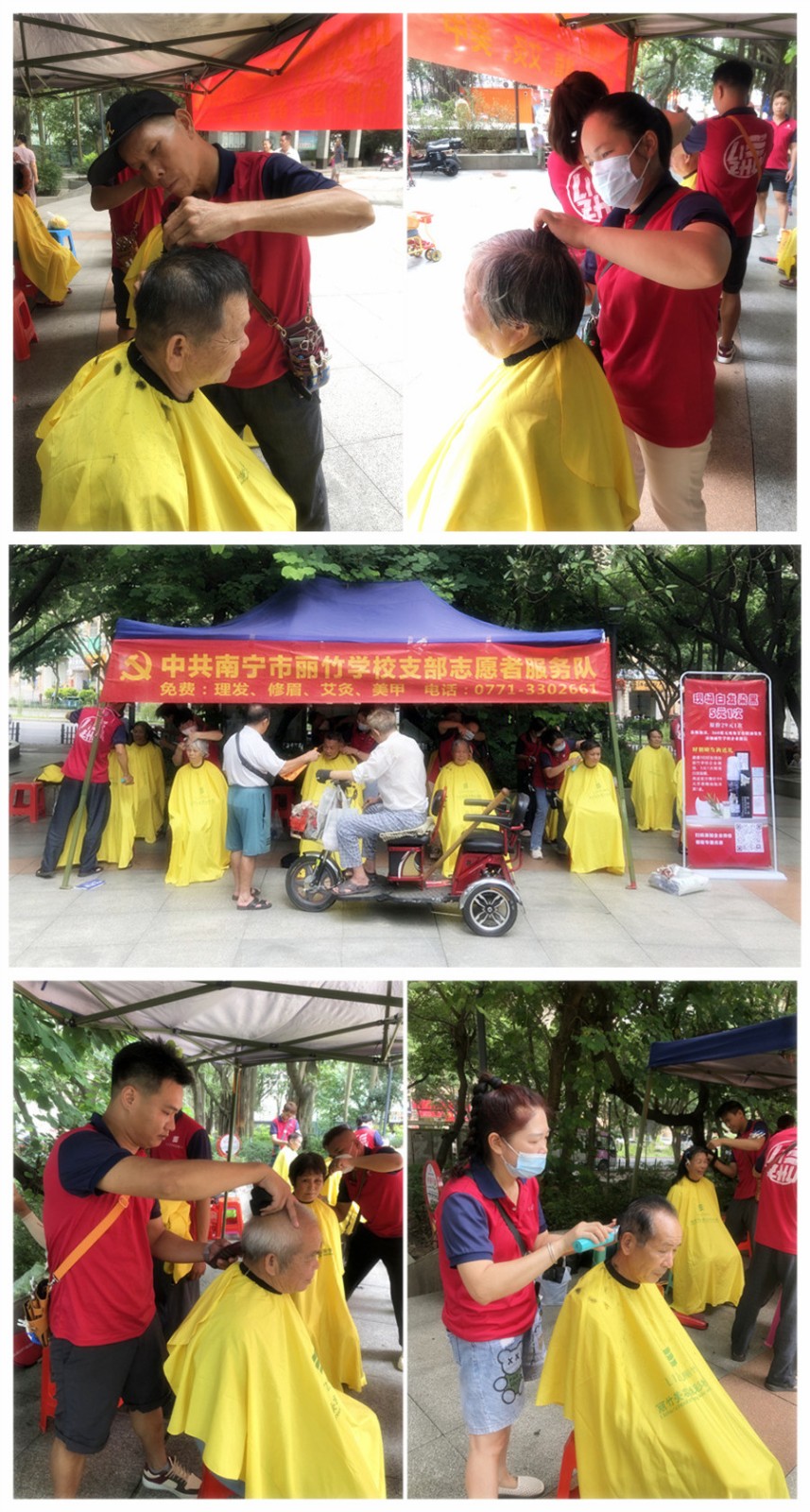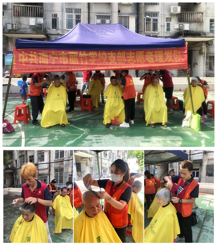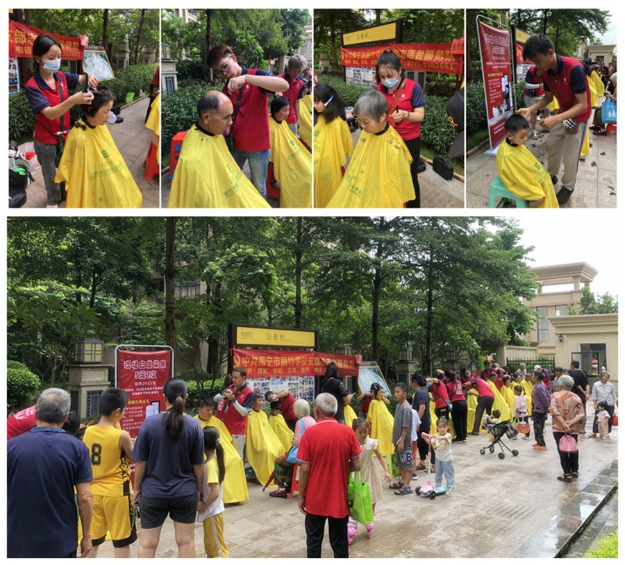 ?小區(qū)免費(fèi)理發(fā)公益活動(dòng),廣西美發(fā)職業(yè)技術(shù)學(xué)校在進(jìn)行