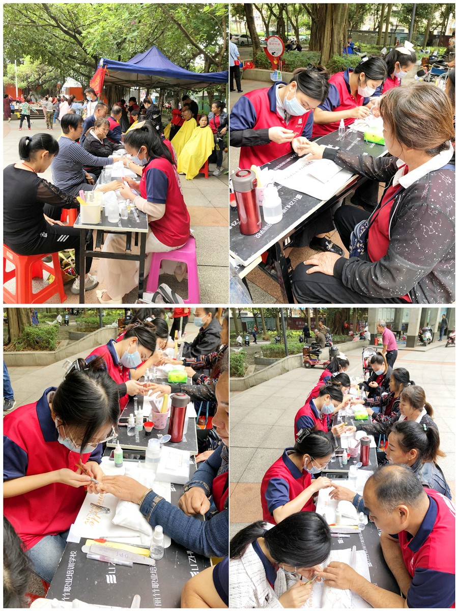 美甲公益活動總結、廣西社區(qū)美甲活動:10月12日,廣西美甲培訓學校在黨支部的組織下,帶領美甲志愿者服務隊來到東溝嶺社區(qū)中心廣場,為居民們提供免費美甲服務。這次雖說是免費美甲活動,但同時也是我們廣西美甲外出教學的一次體驗,這種感覺真的太棒!希望以后可以多多參加這類的美甲外出活動?!?