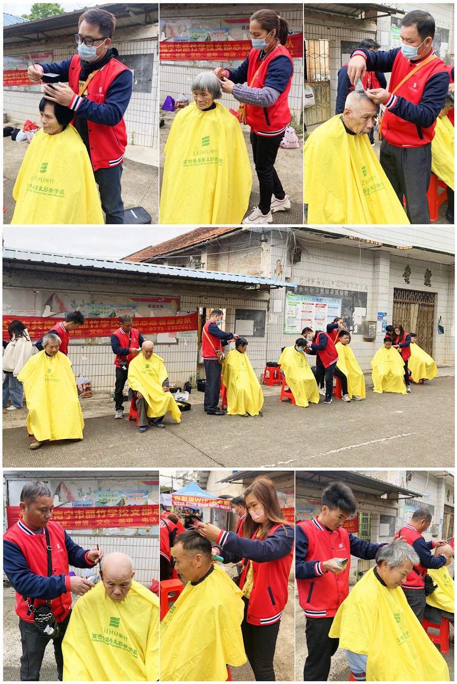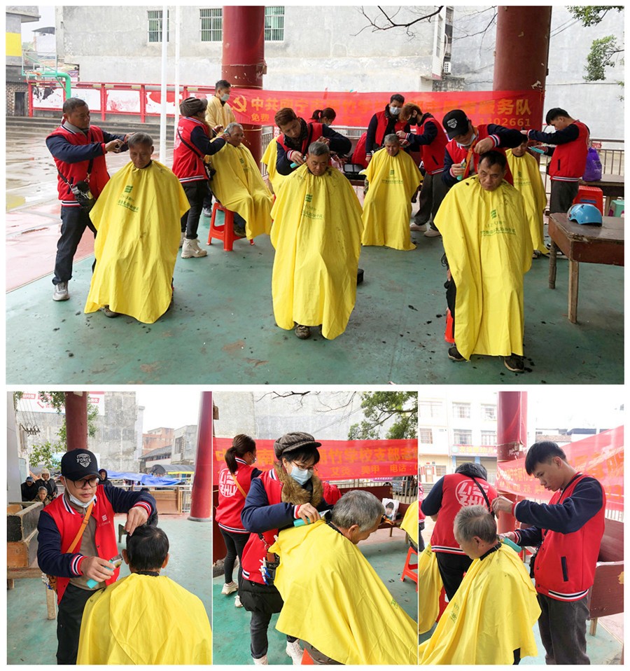 南寧美發(fā)實(shí)踐外出、南寧理發(fā)社會實(shí)踐:南寧美發(fā)學(xué)校排行前三的南寧美發(fā)職業(yè)技術(shù)學(xué)校-南寧美發(fā)培訓(xùn)專業(yè)-麗竹美發(fā)學(xué)校志愿者服務(wù)隊(duì)立馬拿起理發(fā)工作,不顧嚴(yán)寒來到群眾身邊,為大家仔仔細(xì)細(xì)的進(jìn)行理發(fā)活動。