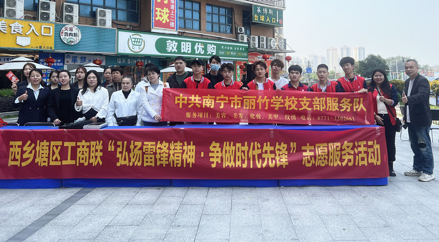 學(xué)雷鋒、南寧學(xué)雷鋒志愿者活動(dòng):今年是第61個(gè)“學(xué)雷鋒紀(jì)念日”,也是第25個(gè)“中國(guó)青年志愿者服務(wù)日”。3月5日,在黨支部的帶領(lǐng)下,南寧美容美發(fā)彩妝職業(yè)培訓(xùn)學(xué)校-南寧市麗竹職業(yè)培訓(xùn)學(xué)校志愿者服務(wù)隊(duì)奔赴到周邊城鎮(zhèn),以實(shí)際行動(dòng)踐行雷鋒精神,展現(xiàn)新時(shí)代青少年的風(fēng)采。