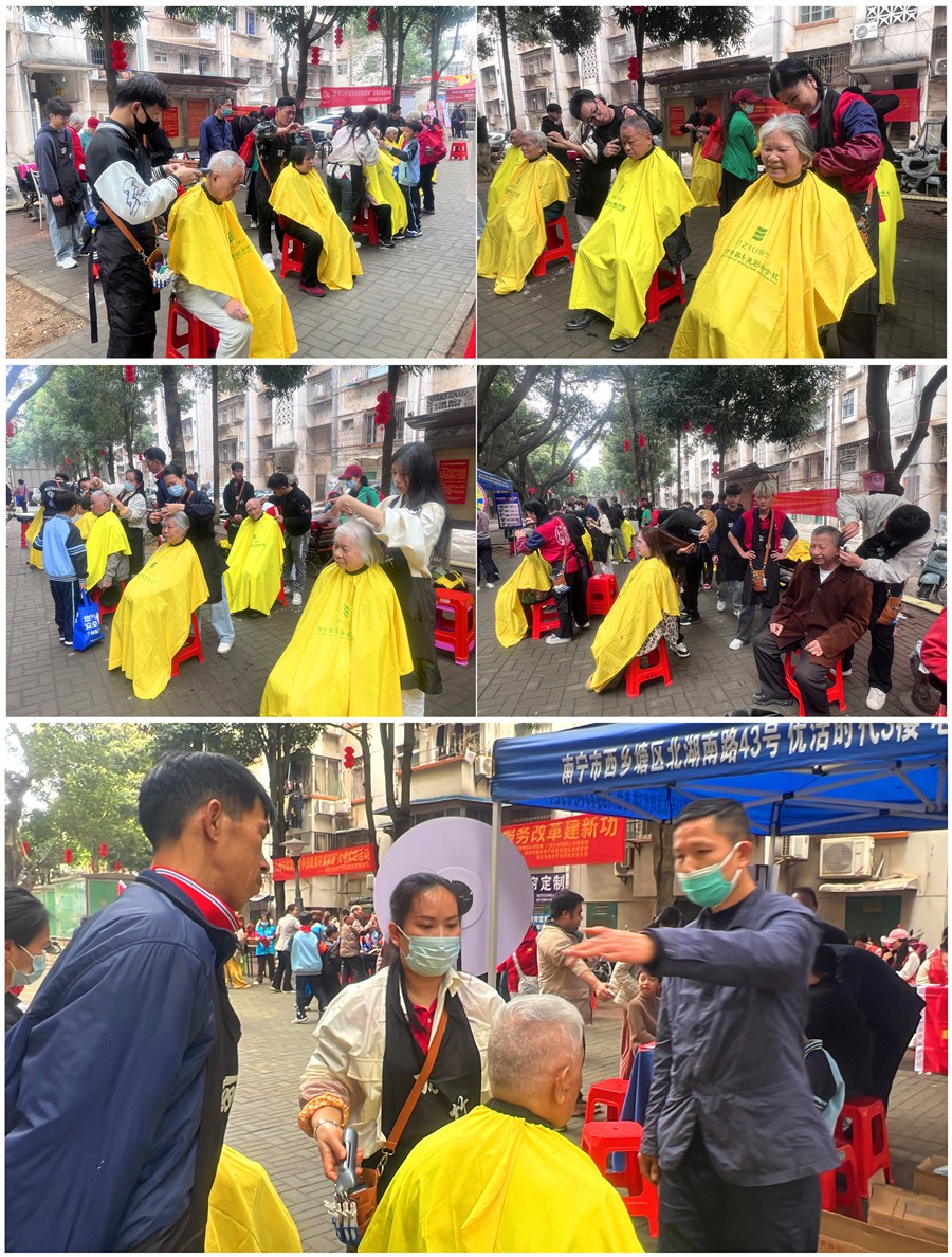 廣西專業(yè)美發(fā)學(xué)員來到南寧市地委大院,為群總免費理發(fā)