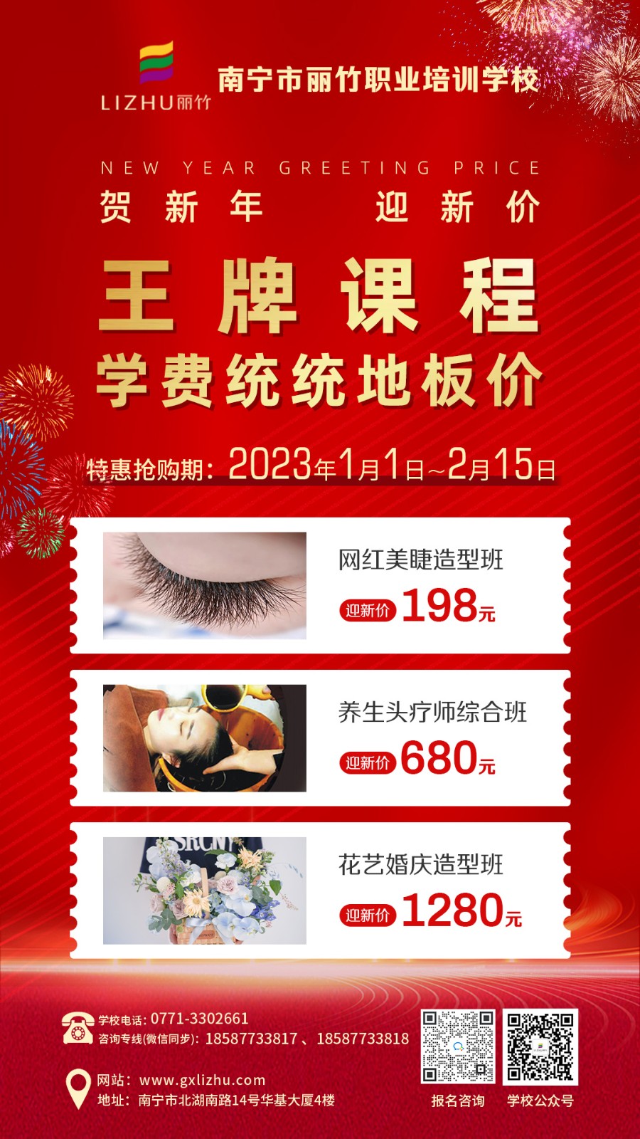 以上就是南寧紋繡課堂筆記關(guān)于零基礎(chǔ)學(xué)紋繡答疑解惑(上)部分的內(nèi)容啦!每個人迎新的方式都不一樣,如果你除了對紋繡感興趣。還對美業(yè)其他課程項目感興趣,那么現(xiàn)在就可以趁著麗竹學(xué)校正在進(jìn)行學(xué)費(fèi)特惠活動期間,關(guān)注我們了解下各大時尚專業(yè)的學(xué)費(fèi)活動詳情了!