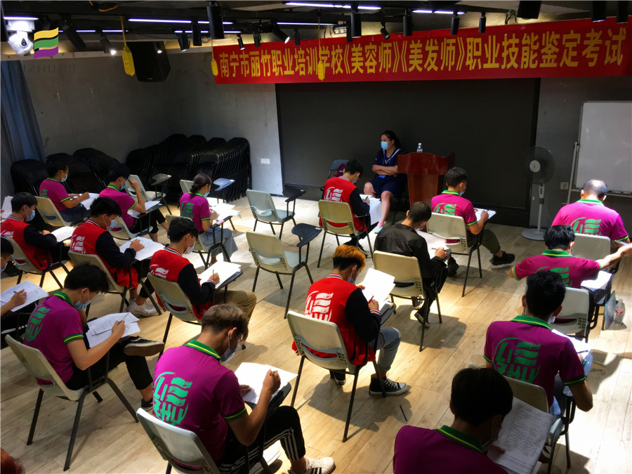 南寧美容美發(fā)學(xué)校:麗竹學(xué)校作為南寧市職業(yè)技能定點培訓(xùn)機構(gòu),于7月26日在本校進行了“南寧市麗竹職業(yè)培訓(xùn)學(xué)?!睹廊輲煛贰睹腊l(fā)師》職業(yè)技能鑒定”考試。
