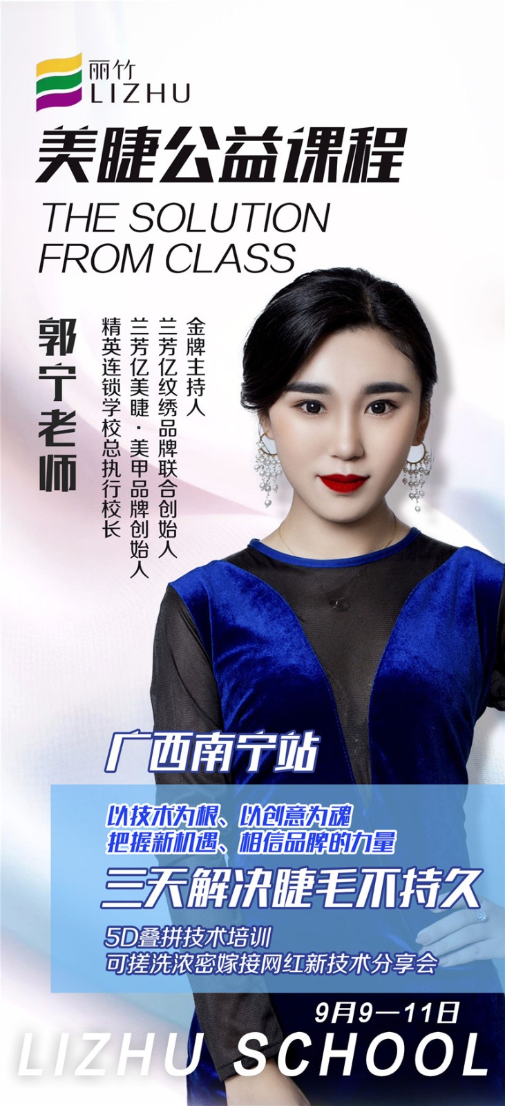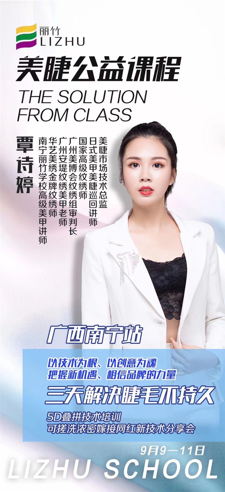 無論你對(duì)你的美睫有多少疑慮和憂心,9月9日-11日,廣西·南寧站麗竹學(xué)校將舉辦一場(chǎng)大型的“美睫公益課程”,教你全方位認(rèn)識(shí)你的美睫,以及時(shí)下流行的美睫技術(shù)。