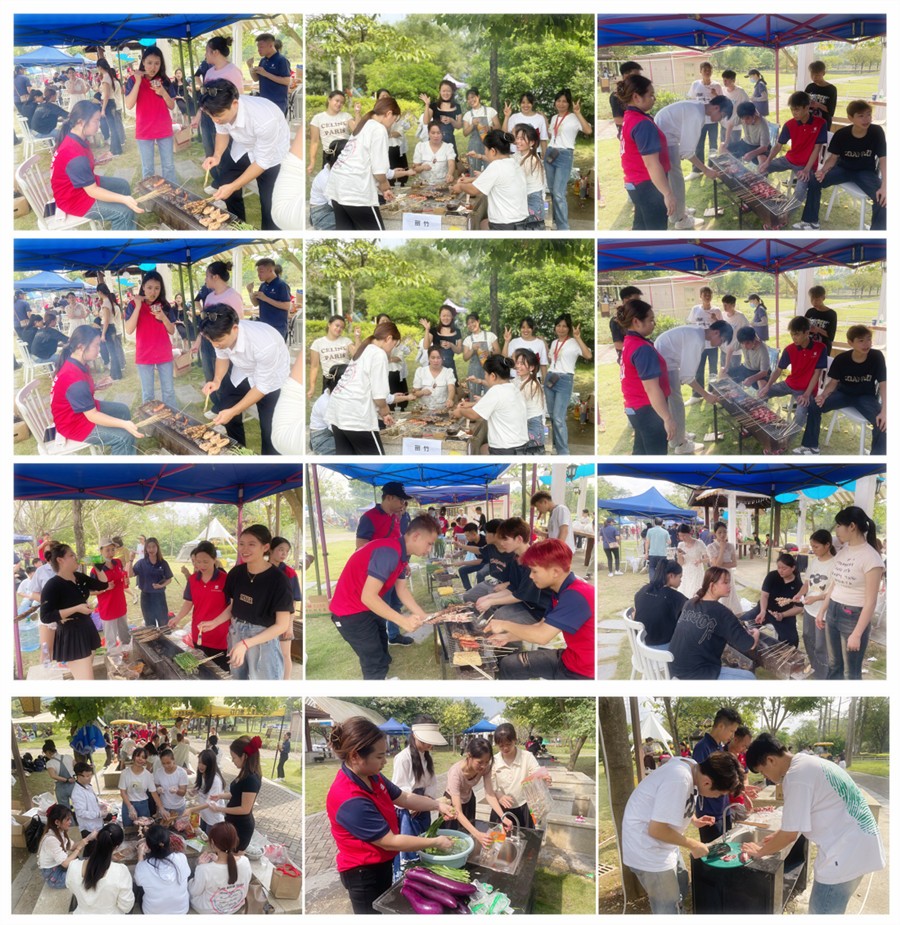 游戲結(jié)束后,終于到了同學(xué)們期待已久的“燒烤盛宴”。大家配合默契,清洗食物,涮調(diào)料的,烤肉的等等,各個步驟有條不紊地展開。隨著縷縷青煙縈繞上空,大家一邊燒烤一邊聊天,到處都飄散著歡聲笑語。